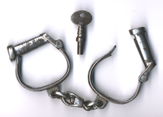 Darby - в переводе ручные кандалы, именно такого типа наручники являлись мировым стандартом на протяжении приблизительно 300 лет. В некоторых штатах США подобные наручники до сих пор используются полицией. Аналогичные наручники можно найти в музеях нашей страны, относятся они к царскому периоду. Производство HIATT. Эта фирма до сих пор их производит - специально для коллекционеров. Открываются вкручиванием ключа, который из себя представляет трубку с внутренней резьбой. Ключ накручивается на заканчивающуюся резьбой защелку и после вытягивания его, замок открывается. Для защелкивания ключ не требуется.