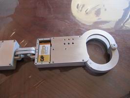 Вместо послесловия...Прошло 5 лет с того момента, как была написана эта статья и вот, пожалуйста, я готов взять свои слова о том, что наручники с таймером не существуют, обратно. Взгляните на это чудо техники. Реальные браслеты с электромагнитным замком и реле времени с диапазоном срабатывания 1..99 минут. Конструкция довольно громоздка сама по себе. Для сравнения рядом лежат стандартные полицейские наручники. К сожалению, нам мало известны детали появления на свет данной модели. Есть основания полагать, что изготовлена она кустарным способом (об этом говорит применение винтов для соединения деталей, а не клепки, что проще в домашних условиях, а также всегда есть возможность разобрать изделие, чтобы довести его до ума) русским умельцем из алюминия. Образец существует в единственном экземпляре. Тем не менее цена изделия, озвученная владельцем 600 USD. Не мало, согласитесь. Впрочем, часть западных коллекционеров не пожалело бы этих денег наверняка. Конечно, это идеальный вариант для селфбондажа, если не принимать во внимание весьма брутальный внешний вид. Несмотря на все свои отрицательные стороны, данная модель, безусловно заслуживает самой высокой оценки в плане идеи и технического воплощения. Можно даже поставить ее в один ряд с изобретением компанией Peerlees современной компоновки наручников. Но в тоже время не стоит рассчитывать на скорое появление таких изделий в массовом производстве и на поясах стражей порядка в силу того, что наручники с таймером никакого практического интереса для спецслужб, да и большинства бондажистов, по нашему мнению, не представляют в силу высокой стоимости и громозкости. |