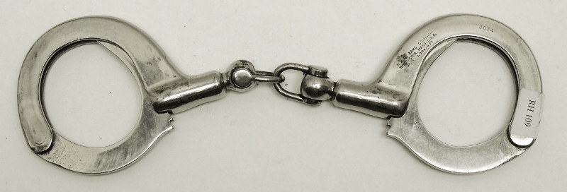 Наручники PeerleesИтак началом новейшей истории я называю то время, когда американская фирма Peerless додумалась до гениальной и простой одновременно идеи о том, что верхняя дужка наручников должна свободно вращаться вокруг точки крепления, когда в наручнике нет руки (или иного препятствия). До этого все имеющиеся модели наручников были одностороннего действия. Т.е. если наручник заперт не на чьей-то руке, а сам по себе, то чтобы открыть его нужно непременно воспользоваться ключом. Исключение наручники Bean, но их идея с кнопкой-предохранителем, также была несколько неудобной. Это создавало определенные проблемы с оперативным применением – быстрым надеванием наручников на преступника. Конечно, можно было все время носить наручники незапертыми, но это также создавало неудобства из-за увеличенных габаритов. Новая концепция браслета предполагала свободное вращение дужки вокруг точки крепления, если внутри наручника ничего не находилось. Новая модель наручников датирована 1912 годом и выглядит так (нажмите на фото, чтобы увеличить) Это новшество значительно сократило время, требующееся для надевания наручников на заключенного, повысило удобство и эргономичность использования. Данная модель Peerless и стала прототипом современной формы наручников. Первые модели Peerlees 1912, именно такое название они получили, не имели фиксатора и антиотжимной проточки. Последняя появилась очень быстро, спустя год-два. Фиксатор же современного образца появляется впервые в модели Peerlees1926 в 1926 году соответственно. К 1944 году наручники Peerlees приобретают уже современные очертания. С этого момента форма и механизм замка не претерпели никаких значимых изменений. Менялся только материал, из которого изготавливались наручники и материал покрытия.