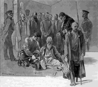 на приговоренных к каторжным работам надевались ножные кандалы, по