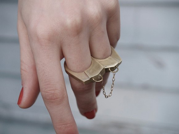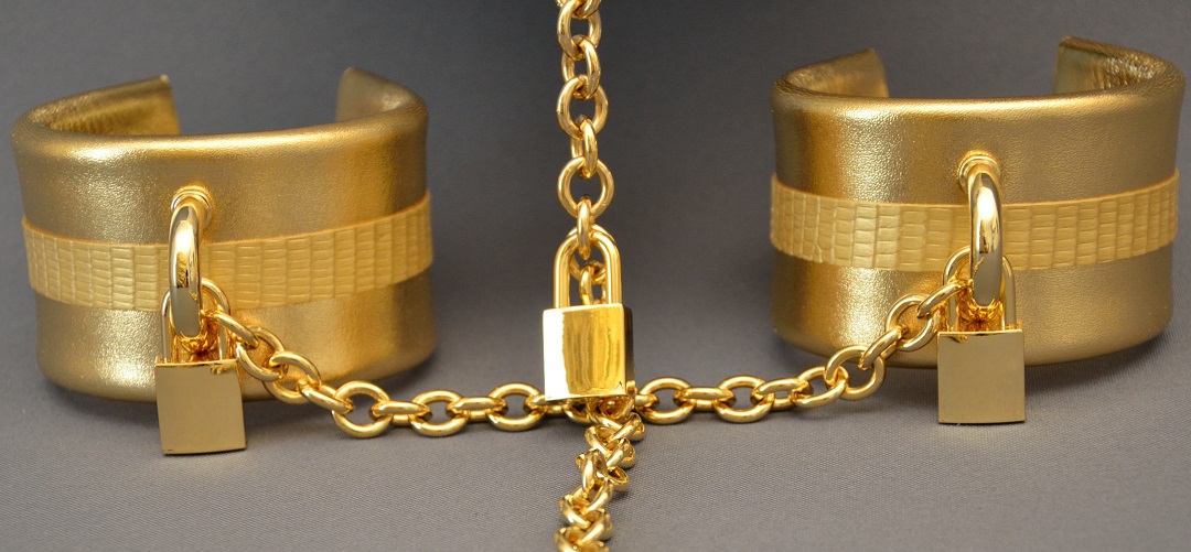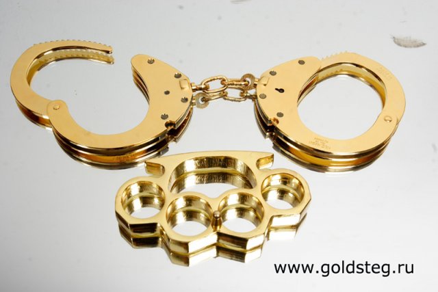 Позолоченный подарочный набор. Наручники и кастет. Не